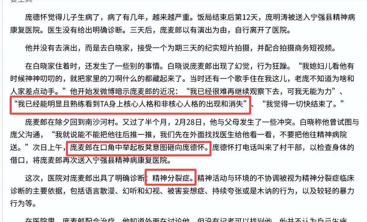 自后的事儿寰球也知谈,2021 年前后,他的牙东谈主发了条 7 分钟视频,说庞麦郎精神情景还是失控,会伤害我方也可能伤害别东谈主,被强制送进了神经病院。《南边东谈主物周刊》也报谈过,从 2017 年起他就变得千里默默默,在家待得越来越久,父亲认为他病了,先后两次送他去病院,第二次还确诊了精神隔离。