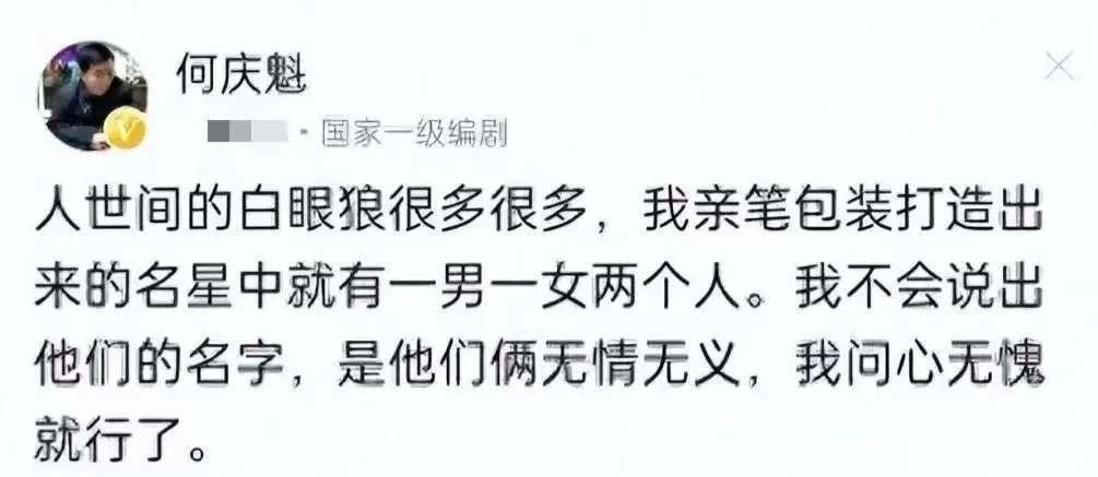 早在2024年,何庆魁就曾发文痛批一男一女两位艺东说念主“讲错而肥”,虽没点名,但他女儿何树成在指摘区径直指认其中就有闫某某。