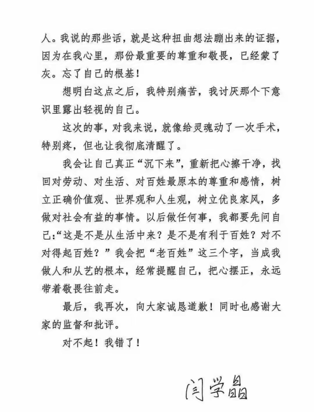 【红星新闻】闫学晶发文致歉:我愤激阿谁下意志里披露轻慢的我方