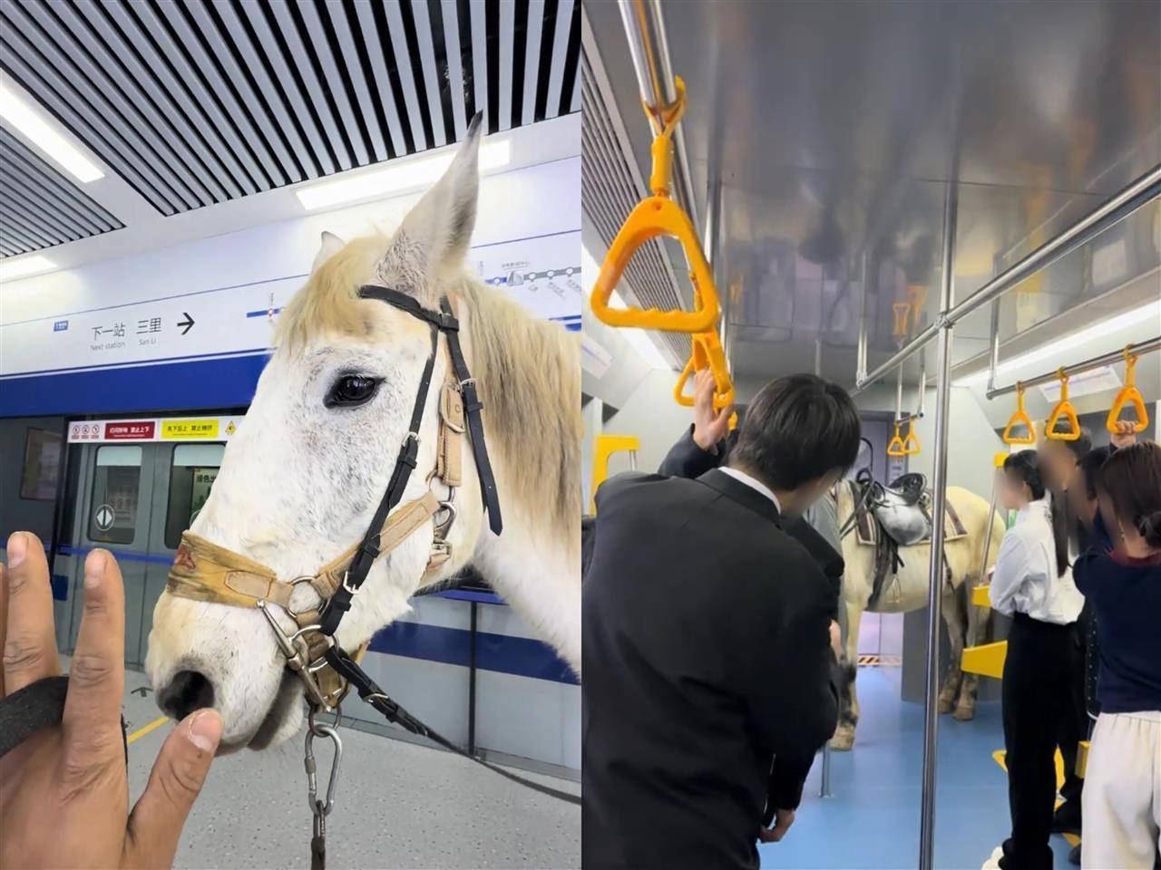 12日下昼,马主东谈主贺先生对极目新闻记者称,该视频不是AI视频,视频中的地铁场景是剧组的配景,内部的地铁车厢是谈具,这是在片场拍戏,莫得把马牵进西安地铁。视频中,围不雅马的东谈主是群演。