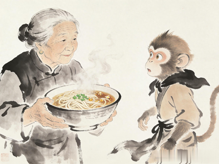 "大圣止步。"内助婆伛偻着背,手里端着一碗繁荣昌盛的臊子面,"吃了这碗面,再走不迟。"