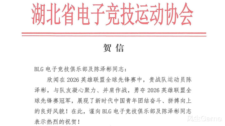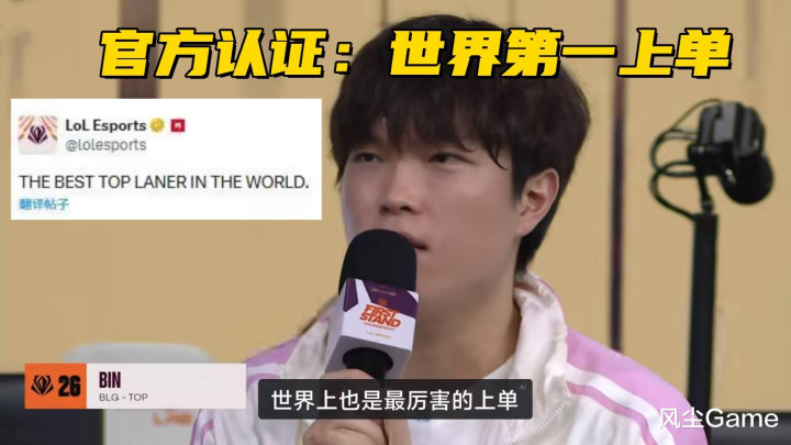 BLG拿下冠军之后,硬人定约官方共享Bin哥捧杯照,而况配文:寰球第一上单,连官方齐认同了,Bin哥世一上着实至名归了,Bin哥的牌面还不啻于此,湖北电子竞技通顺协会,在Bin拿下FMVP之后,平直发文道贺Bin哥和俱乐部,粗略言出必行的Bin,俨然是电竞圈后生代表东说念主物了。