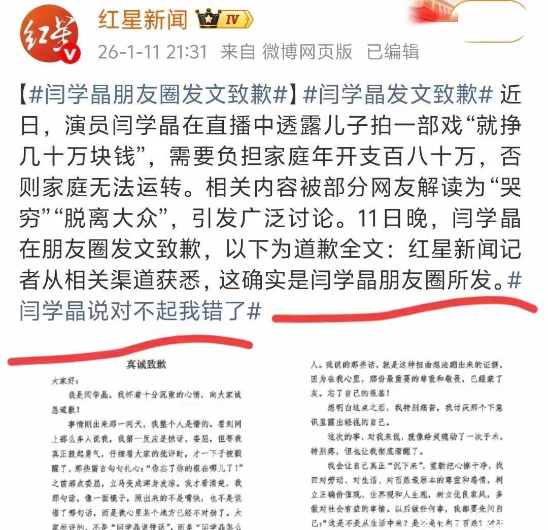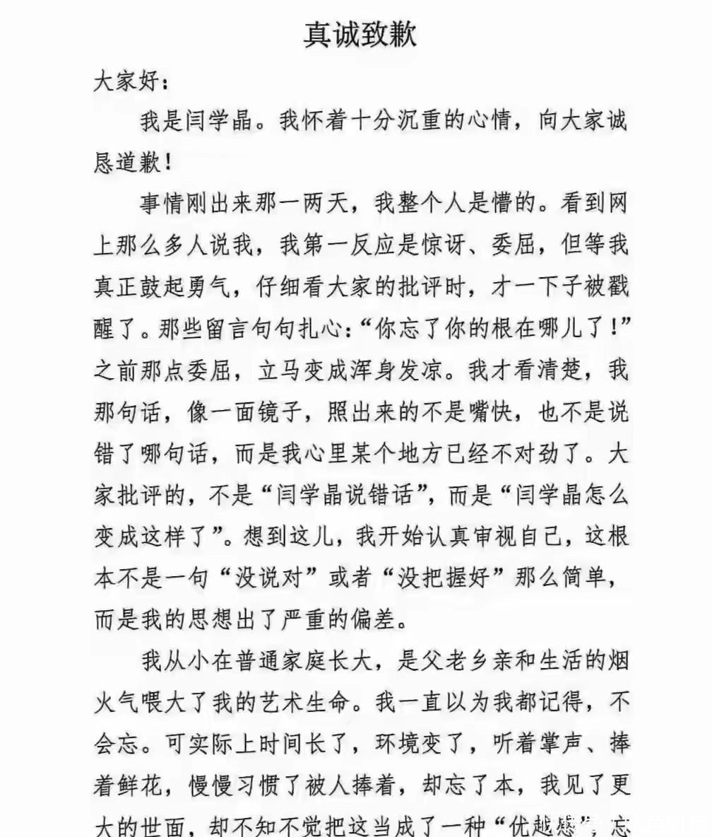 事态升级后,中戏官方环节恢复,发布声明澄澈干系神话,致力于还涉事各方一个公说念。而此声明发布刚过不到一天,《红星新闻》曝出:闫学晶已在一又友圈发布说念歉信。很快,说念歉现实席卷热搜。