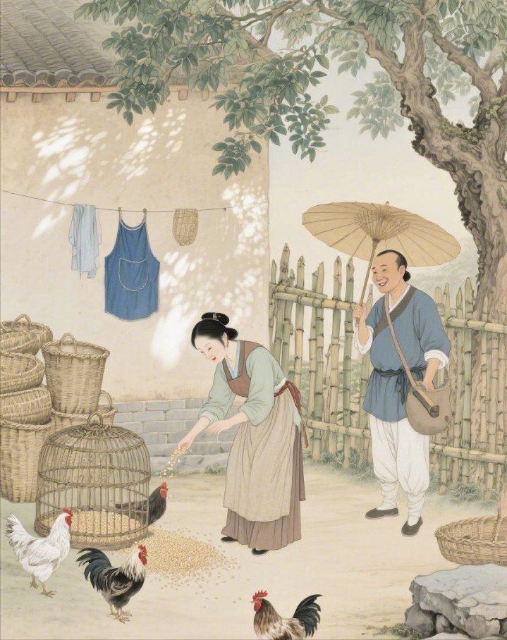 第二天,周大壮去陈寡妇家还伞,陈寡妇正在院子里喂鸡。见他来了,笑说念:“大壮,记忆了?活干完结?”