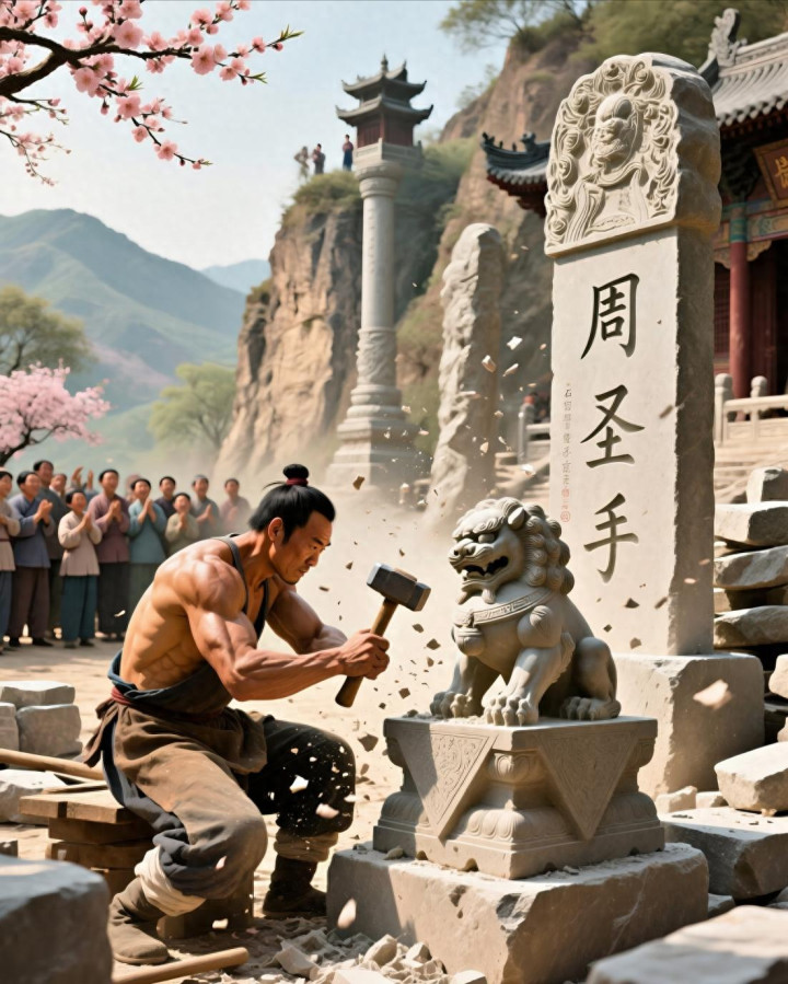 明朝万积年间,青州府益都县有个桃花村,村里有个石工叫周大壮。他祖上三代都是石工,传到他这一辈,本事更是后起之秀。他雕的石狮子活天真现,刻的石碑笔迹留意,方圆百里谁家修坟、盖庙、打石础,头一个料到的即是他。周大壮为东说念主忠厚真诚,干活从不偷工减料,乡亲们都夸他是“石圣手”。