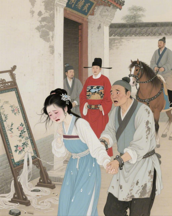 吴县令的女儿吴秀兰正在后院拈花,听见动静跑出来,看见父亲被押走,花容媲好意思,泪眼汪汪。她穿着一件淡蓝色的衣裙,头发只用一根银簪挽着,脸上不施脂粉,却掩不住天生的好意思貌。她拉住周大壮的手,哭着说:“周师父,求求你,带我去马府吧!只须我搭理嫁昔日,马家就会救我爹爹!”