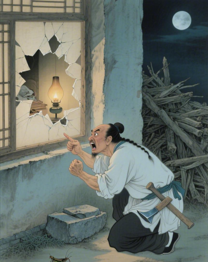 此时已是夜深,屋里还亮着灯。周大壮正要叩门,忽听内部有动静。他蹑手蹑脚绕到窗下,捅破窗纸往里一看,顿时目眦欲裂!