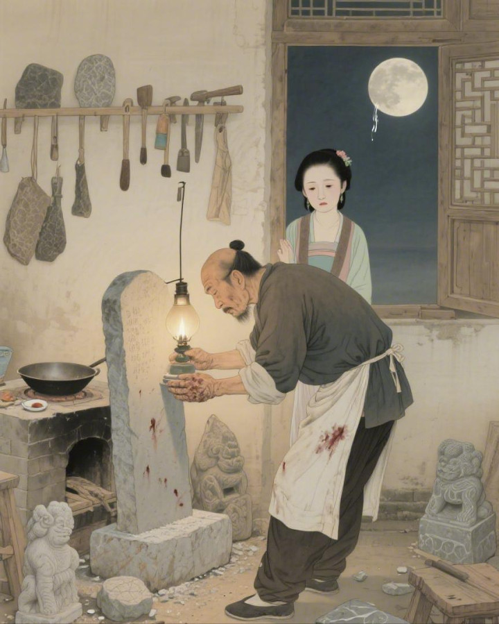 这天,村长孙德厚又给周大壮揽了个大活——城北孙家庄的孙员外要修缮祖坟,需要打一双石马、石羊,还要刻一块墓碑,工钱是日常的三倍,但要住在外地,一两个月不行回家。