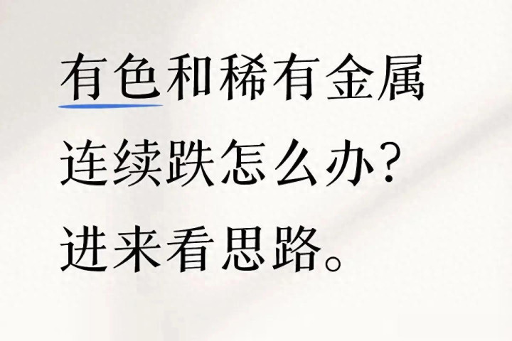 有色和稀奇金属是耐久逻辑,别在高点追进去,跌下来分批买,摊薄资本才稳,没必要赌短期暴涨。