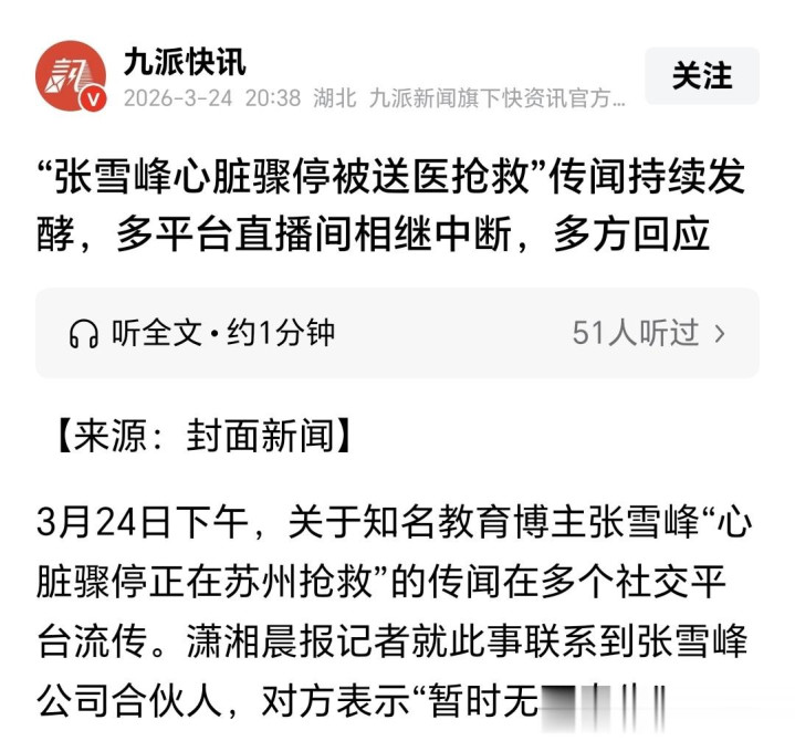 张雪峰腹黑抢救争议事件,官方回话迷雾重重,健康警示悄然彭胀.