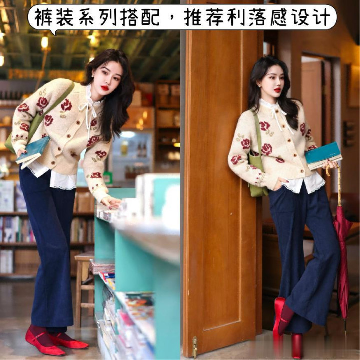 像这种阔腿裤的版型景况,还是一定要优先于聘用省略体现出彰着利落感笼统的走向为主,直筒型的打算,又或者是微喇裤时势,都不错很圆善的优化咱们的腿型线条的走向,关于小赘肉比拟多,或者是线条走向不面子的女性而言长短常有必要的优选。