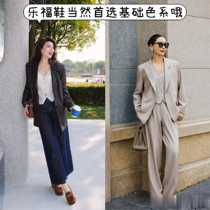 若是这么的搭配念念要烘托出来又利落又高等的穿搭为止,那么就薄情诸君女性最佳是省略哄骗直筒系列的阔腿裤,何况是属于暗色彩为主,下半部分聚积的乐福鞋亦然属于暗色彩,若是是尖头或者方头这么的版型景况就更好了,因为他们的版型自己就省略烘托出来高等利落的气质。