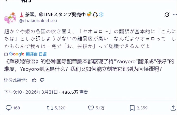 事情是这么的《超时空辉夜姬!》主角启齿第一句“ヤオヨロ~”
