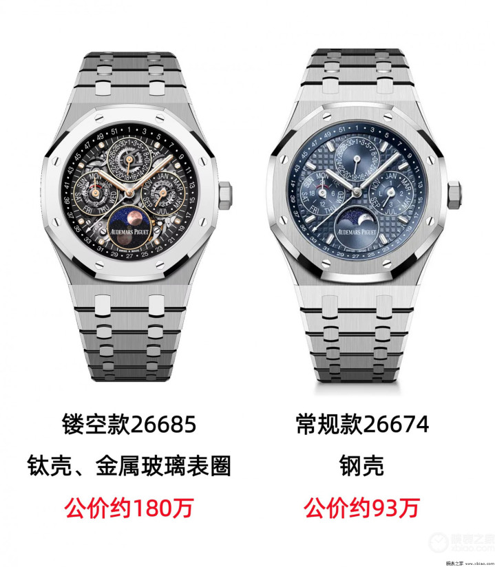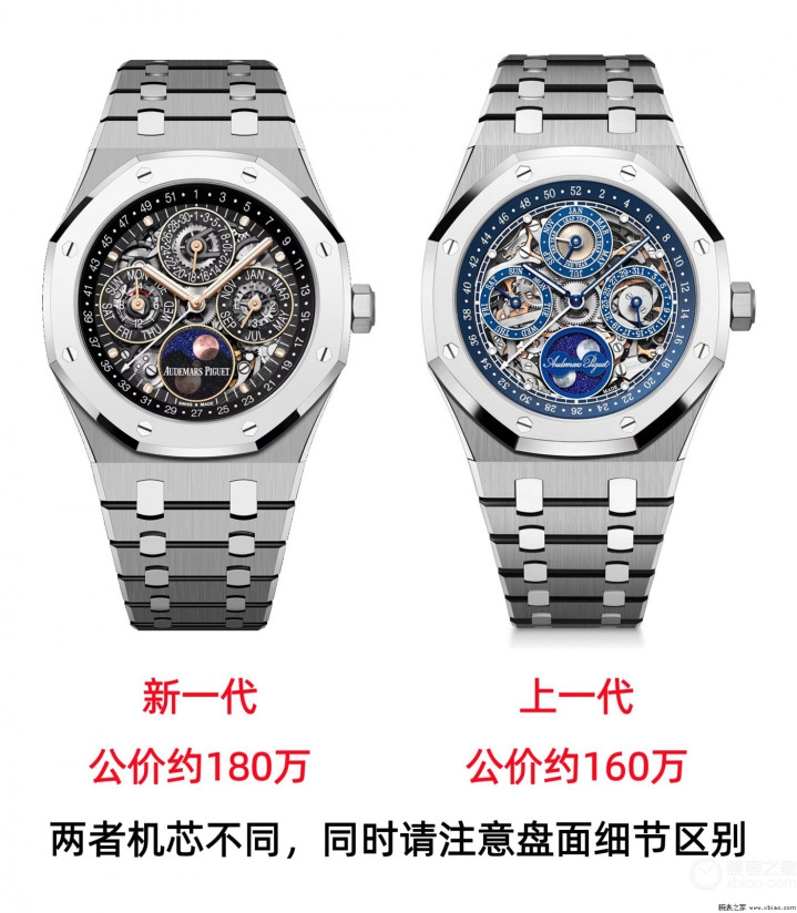 爱彼皇家橡树万年历,镂空款,新一代对比上一代。
